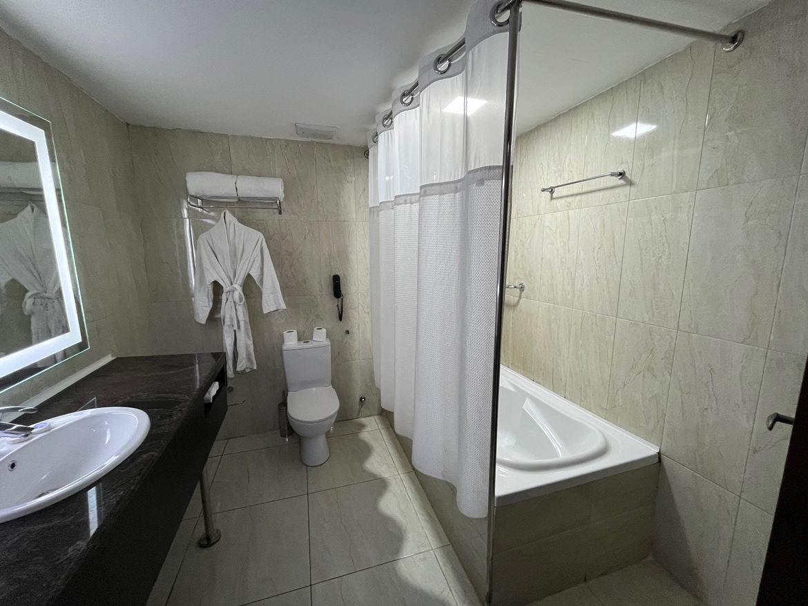 Our Executive room is a tastefuly finished luxury spacious room of 25.8ftby27.1ft square meters room and 8.5by6.3ftft square meters bathrooms space.